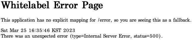 이런식으로 예외가 발생한 상태이다. 웹 상에는