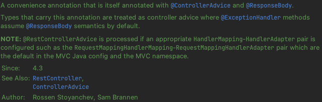 설명에서는, ExceptionHandler어노테이션으로 명시되어 있는 메서드를 @ResponseBody로, 메서드 내의 반환 값을 바디에 반환해주는 것이다.