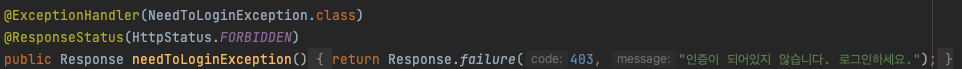 @ResponseStatus는 에러코드 반환을 어떤 값으로 할지 명시해준다.