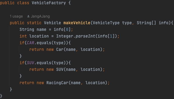 이를 통해 하나의 메서드로 자동차를 종류별로 만들 수 있게 했다.