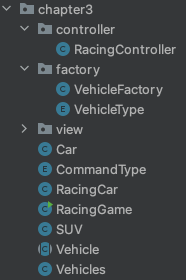 자동차의 종류를 3개정도 정해두고, 이를 입력받는 종류대로 만들어준 후, 이들끼리 시간이 지남에 따라 레이싱을 하고 1등이 발생하면 종료하는 방식으로 진행했다.