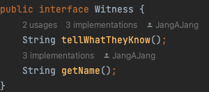 이를 통해, Judge는 앨리스가 오건, 주방장이 오건, 모자장수가 오건 모두 Witness라는 역할로써 오기 때문에 다 수용할 수 있게 된다.