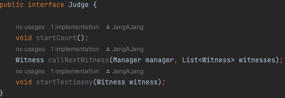 다른 객체가 해당 역할을 수행할 수 있게 하려면, 인터페이스를 implement해주는 방식으로 진행했다.