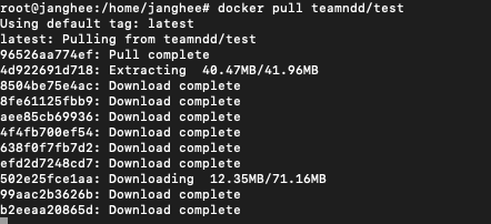 원격 서버에서 pull을 할 때, 그리고 Push를 할 때 tag가 명시되어있지 않다면, 보는 것과 같이 default태그로 latest로 받아진다.