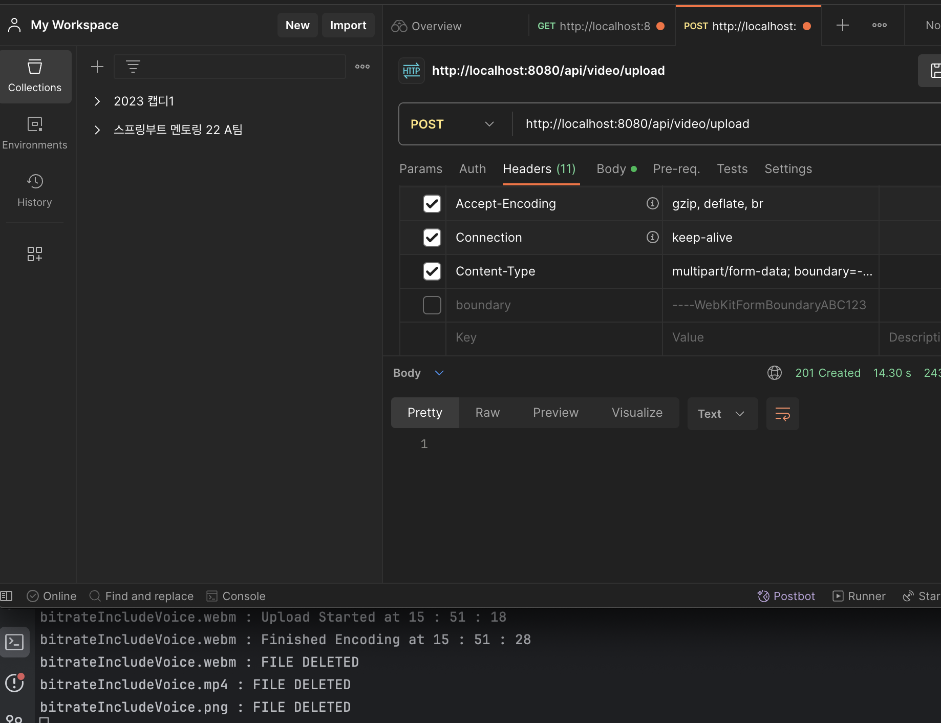- 로컬에 받은 파일을 mp4(인코딩된 영상), png(썸네일)로 만들어준다. (이 때 webm파일을 지운다)
