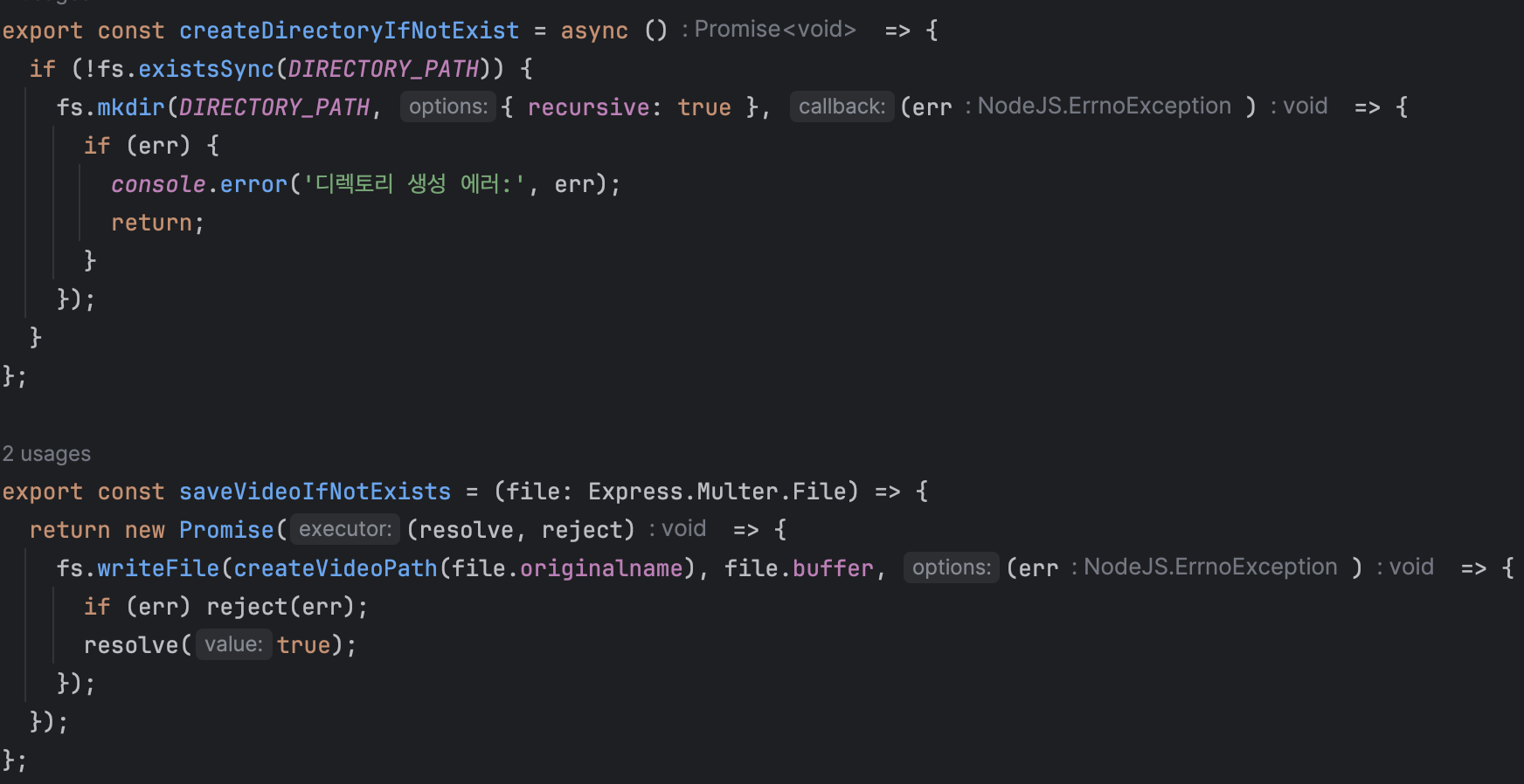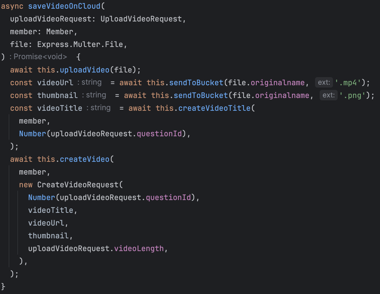 아래의 createVideo의 복잡한 부분은 기존 로직을 재사용하기 위해 이렇게 구현했다.