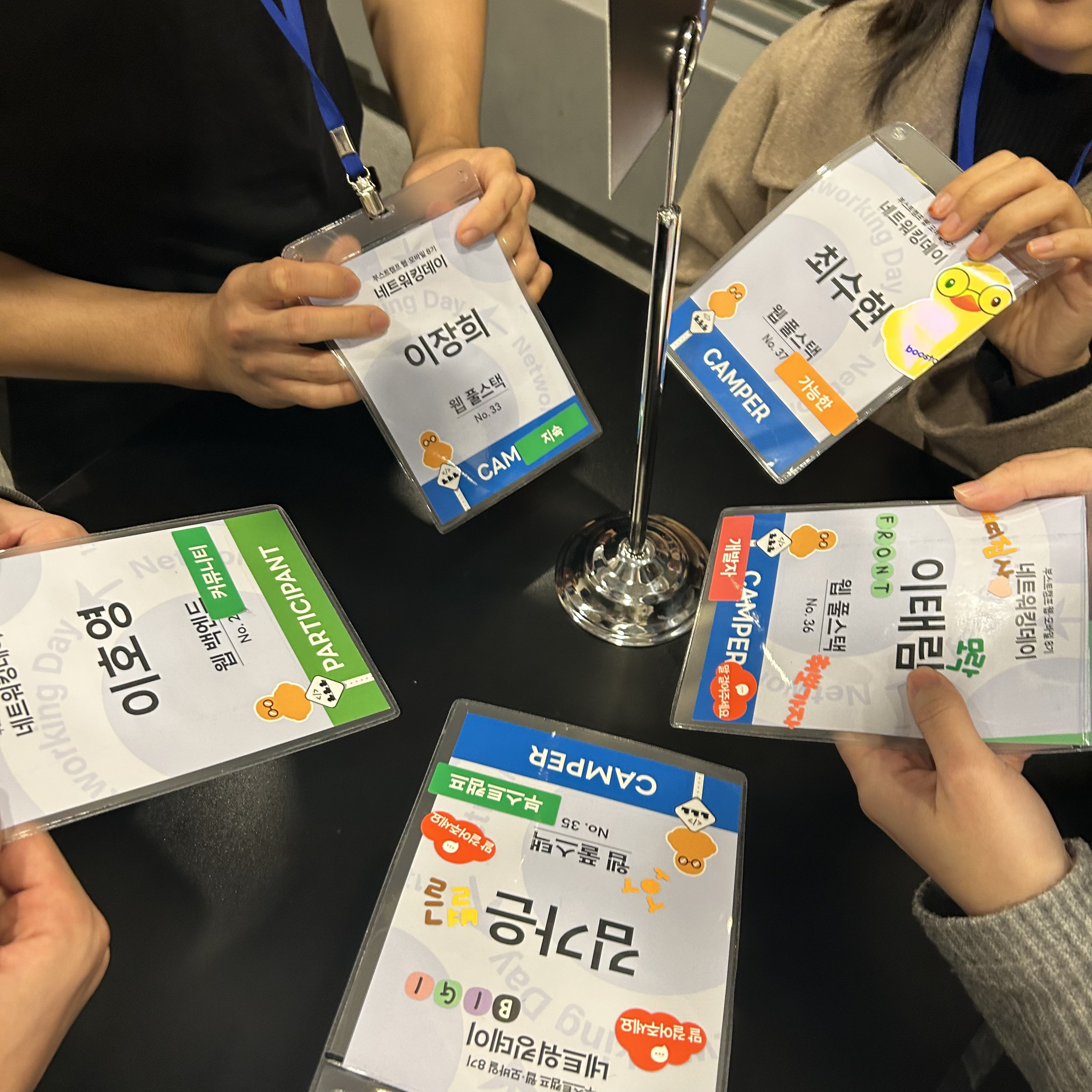 이야기를 하다가, 저 자리에 계신 분들중 대부분이 부스트캠프에서 신청한 현업자와의 커피챗타임이 있어서 차리가 터지게 되었다