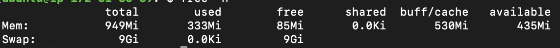 free -h라는 명령어로 total, used, free, shared, buff/cached, available이 있다는 것을 알았다.