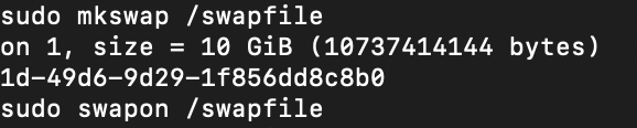 이런 명령어를 통해 스왑 메모리를 활성화시켜준다.