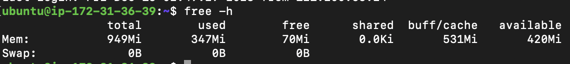 이후 스왑메모리가 적용되었는지 다시 free -h해주었다.