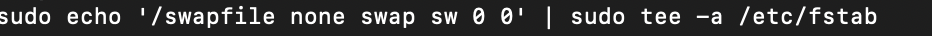 이런 명령어를 통해 스왑 메모리를 서버의 재부팅시에도 설정하게 해줄 수 있다.