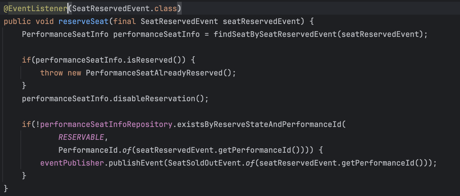 그렇다면, 좌석객체가 예약/환불될 때 공연 더 예약 받을까?라던가 공연 더 예약 가능해!라는 말을 해주어야 한다.