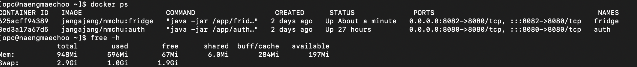 현재 OCI 무료 인스턴스 내부에서 동작하고 있는 컨테이너(모듈)이다.