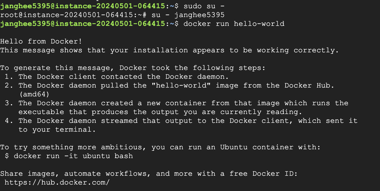 이제 해당 도커 허브에 접근해 도커 컨테이너를 가져올 수 있다.