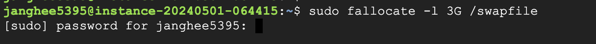 이제 정상적으로 루트 권한으로 사용할 수 있고, 이 상태에서 스왑메모리를 추가해주었다.