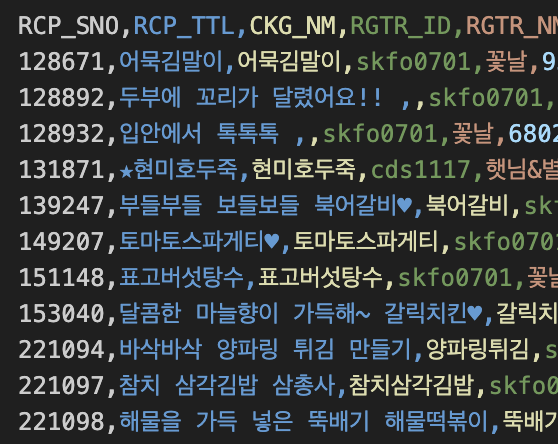 여기에서 데이터를 전처리해서 재료들을 빼내고, 데이터를 가져오는 것을 1차적으로 생각했다.