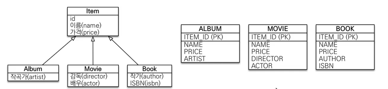 - TABLE_PER_CLASS : 구현 클래스마다 테이블 전략