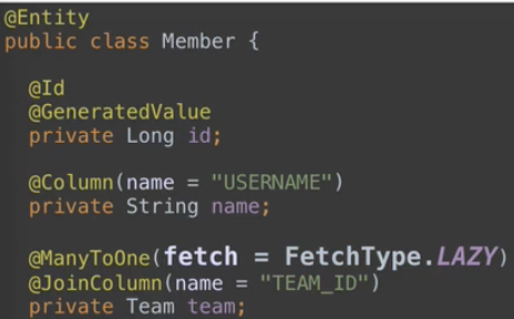 이 떄!!! 멤버에 다대일로 매핑되어있는 팀은 프록시로 가져오게 된다.
