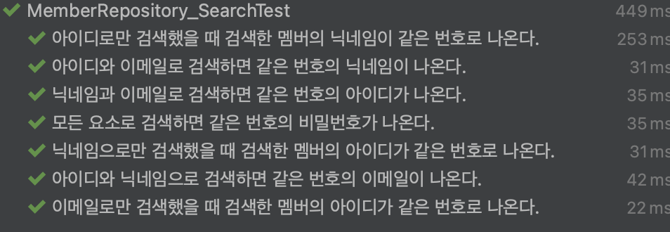 모든 테스트가 정상 동작한다.