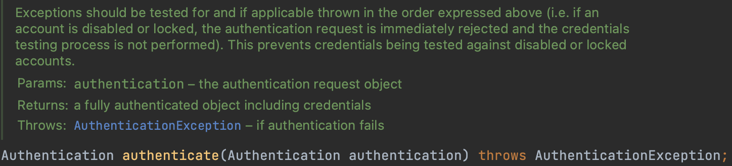 위를 해석해보았을 때, 인증은 계정이 비활성화되었거나 잠겨있을 때 예외처리된다고 되어있다.